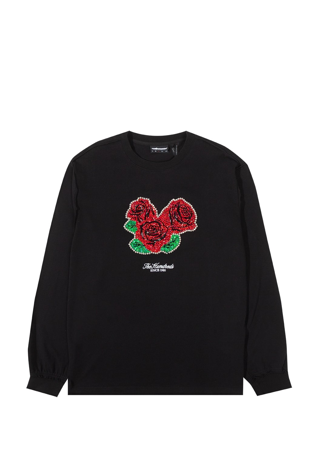 - Hand-beaded with sequins and rhinestone studs Roses at front chest