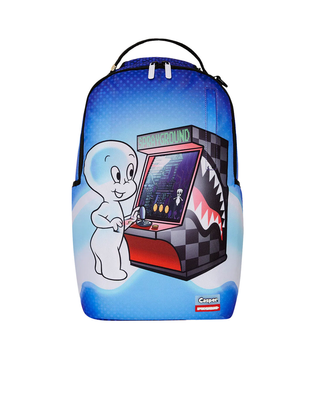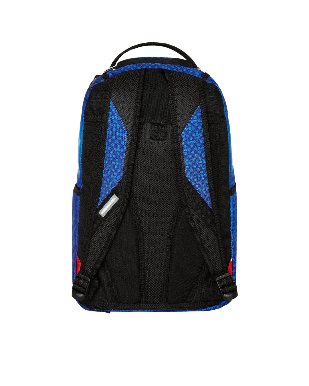 Dimensions: 18" x 6" x 11.5" • Front zipper pocket • Side pockets • Zippered Stash pocket • Separate velour sunglass compartment • Ergonomic mesh back padding • Adjustable Straps for custom sizing • Gold zippers with metal hardware • Metal "Sprayground Authentic" badge • Slide through back sleeve connects to carry-on luggage to free your hands
