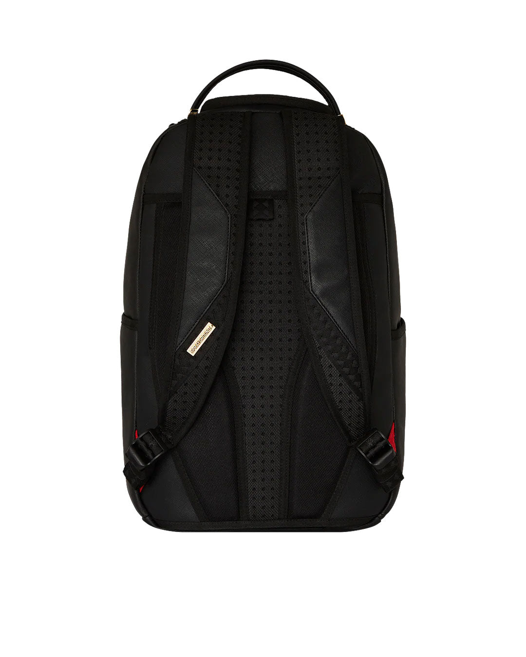 Dimensions: 18" x 6" x 11.5" • Front zipper pocket • Side pockets • Zippered Stash pocket • Separate velour sunglass compartment • Ergonomic mesh back padding • Adjustable Straps for custom sizing • Gold zippers with metal hardware • Metal "Sprayground Authentic" badge • Slide through back sleeve connects to carry-on luggage to free your hands