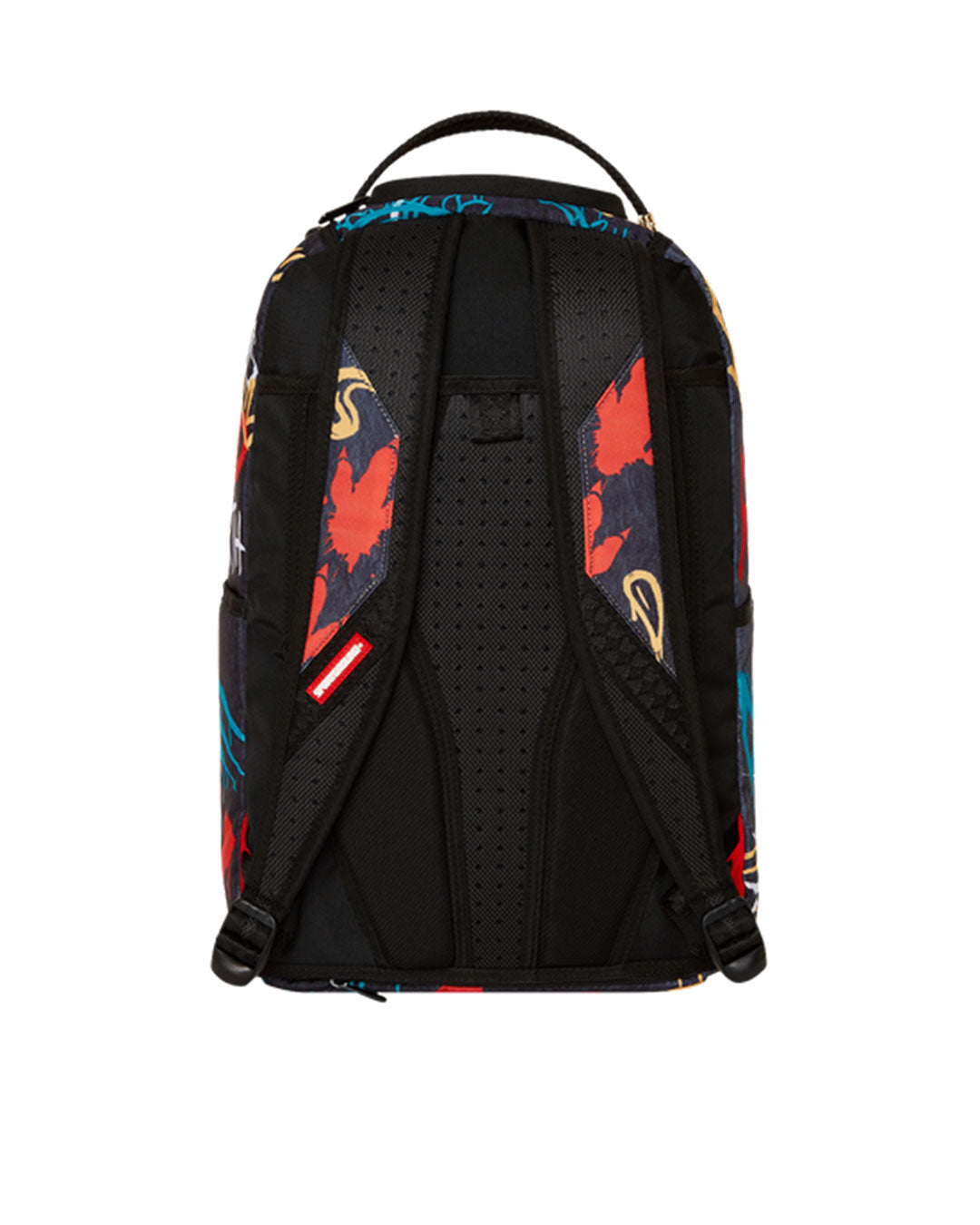 Dimensions: 18" x 6" x 11.5" • Front zipper pocket • Side pockets • Zippered Stash pocket • Separate velour sunglass compartment • Ergonomic mesh back padding • Adjustable Straps for custom sizing • Gold zippers with metal hardware • Metal "Sprayground Authentic" badge • Slide through back sleeve connects to carry-on luggage to free your hands