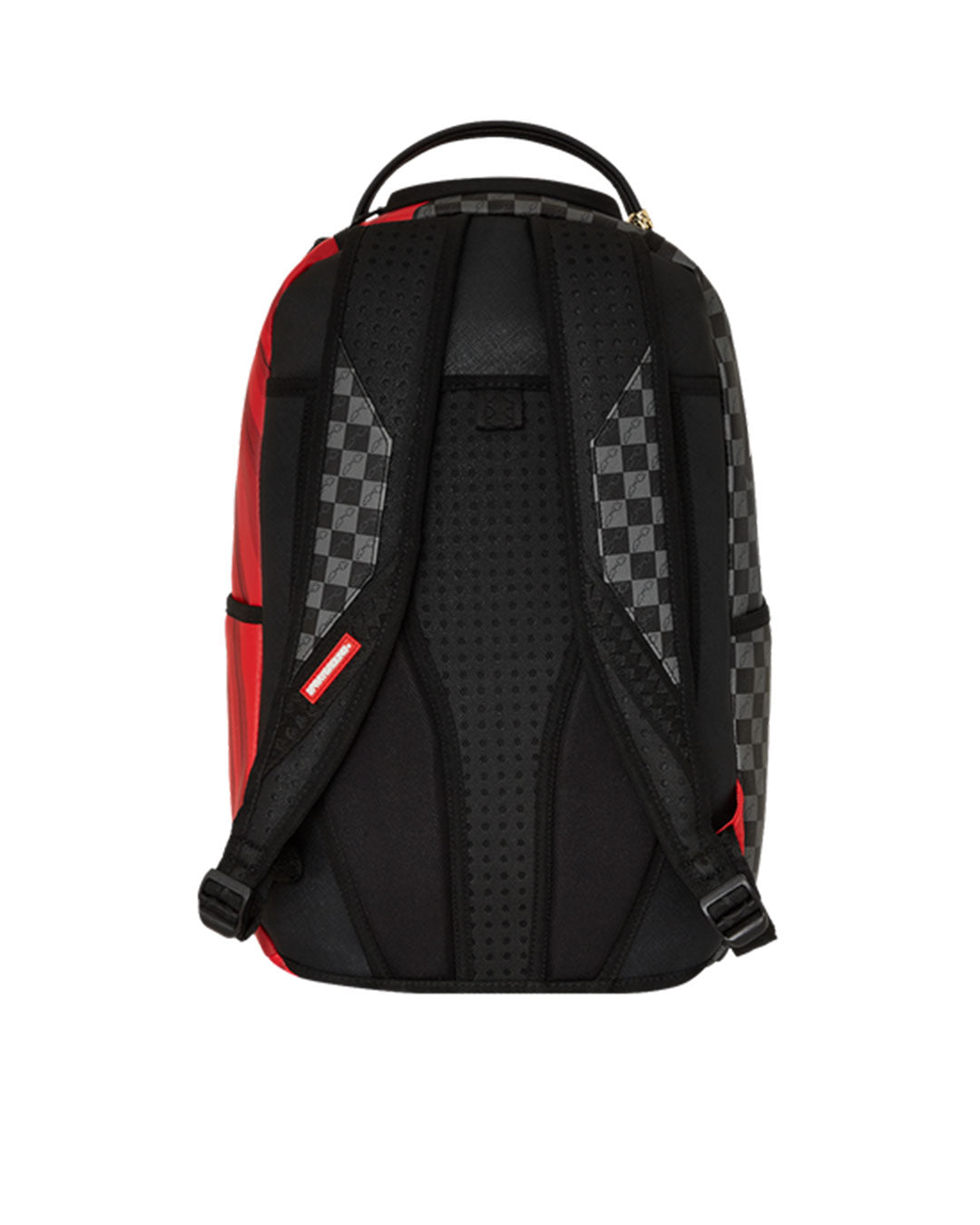 Dimensions: 18" x 6" x 11.5" • Front zipper pocket • Side pockets • Zippered Stash pocket • Separate velour sunglass compartment • Ergonomic mesh back padding • Adjustable Straps for custom sizing • Gold zippers with metal hardware • Metal "Sprayground Authentic" badge • Slide through back sleeve connects to carry-on luggage to free your hands