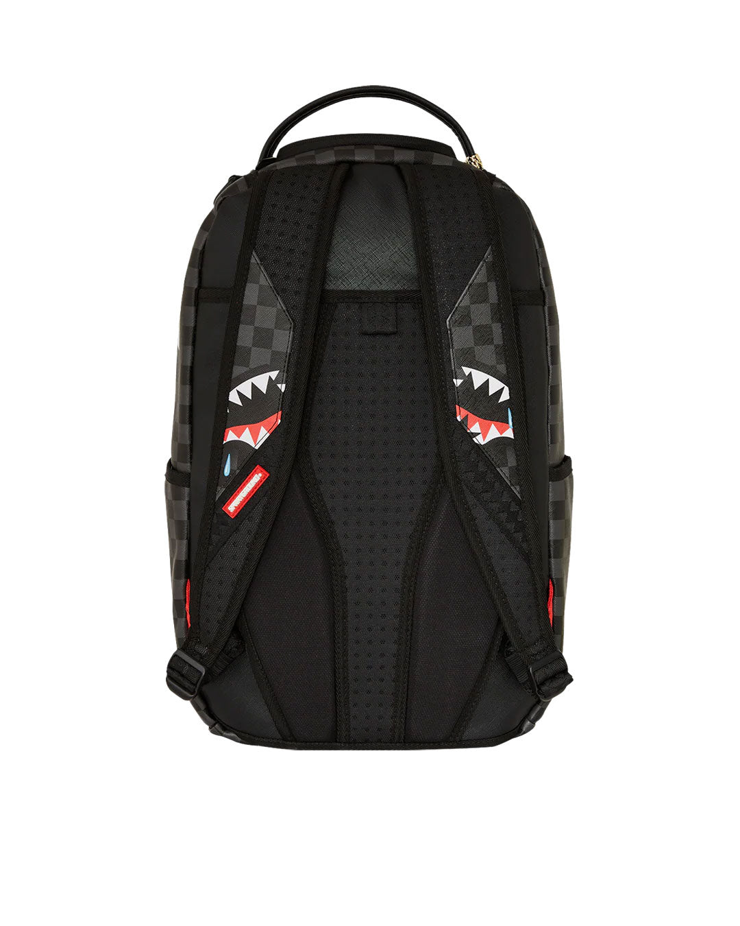 Dimensions: 18" x 6" x 11.5" • Front zipper pocket • Side pockets • Zippered Stash pocket • Separate velour sunglass compartment • Ergonomic mesh back padding • Adjustable Straps for custom sizing • Gold zippers with metal hardware • Metal "Sprayground Authentic" badge • Slide through back sleeve connects to carry-on luggage to free your hands