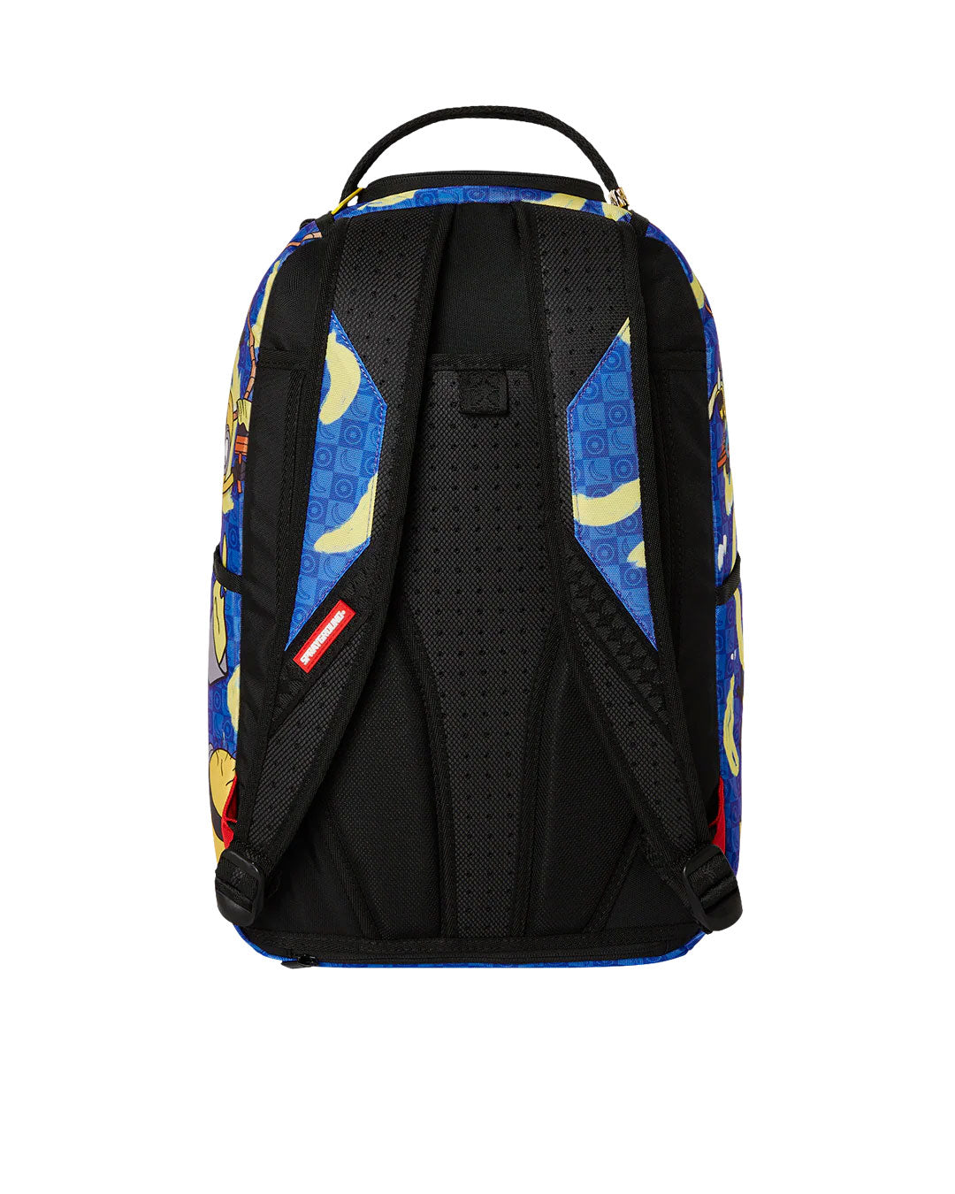 Dimensions: 18" x 6" x 11.5" • Front zipper pocket • Side pockets • Zippered Stash pocket • Separate velour sunglass compartment • Ergonomic mesh back padding • Adjustable Straps for custom sizing • Gold zippers with metal hardware • Metal "Sprayground Authentic" badge • Slide through back sleeve connects to carry-on luggage to free your hands