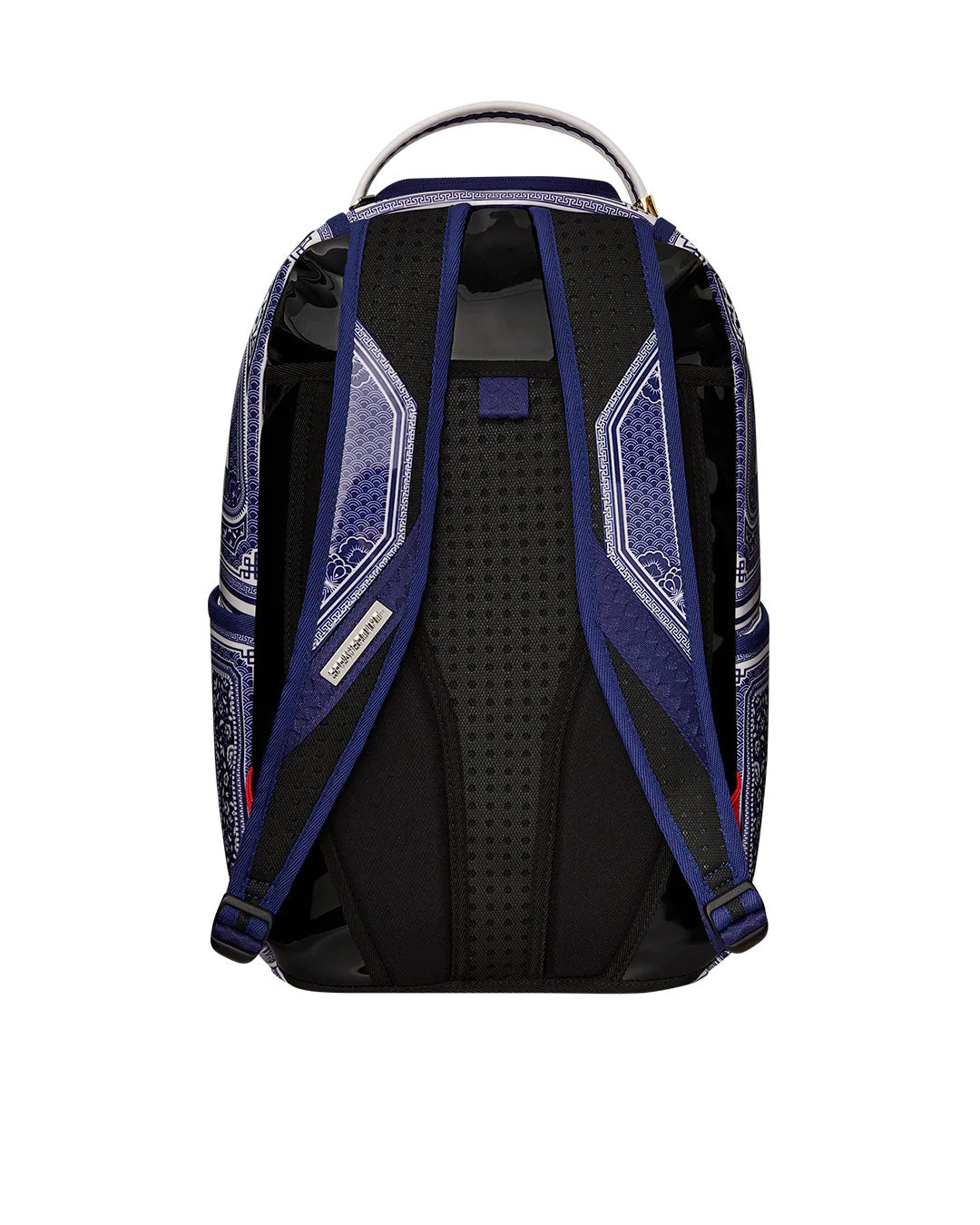 Dimensions: 18" x 6" x 11.5" • Front zipper pocket • Side pockets • Zippered Stash pocket • Separate velour sunglass compartment • Ergonomic mesh back padding • Adjustable Straps for custom sizing • Gold zippers with metal hardware • Metal "Sprayground Authentic" badge • Slide through back sleeve connects to carry-on luggage to free your hands