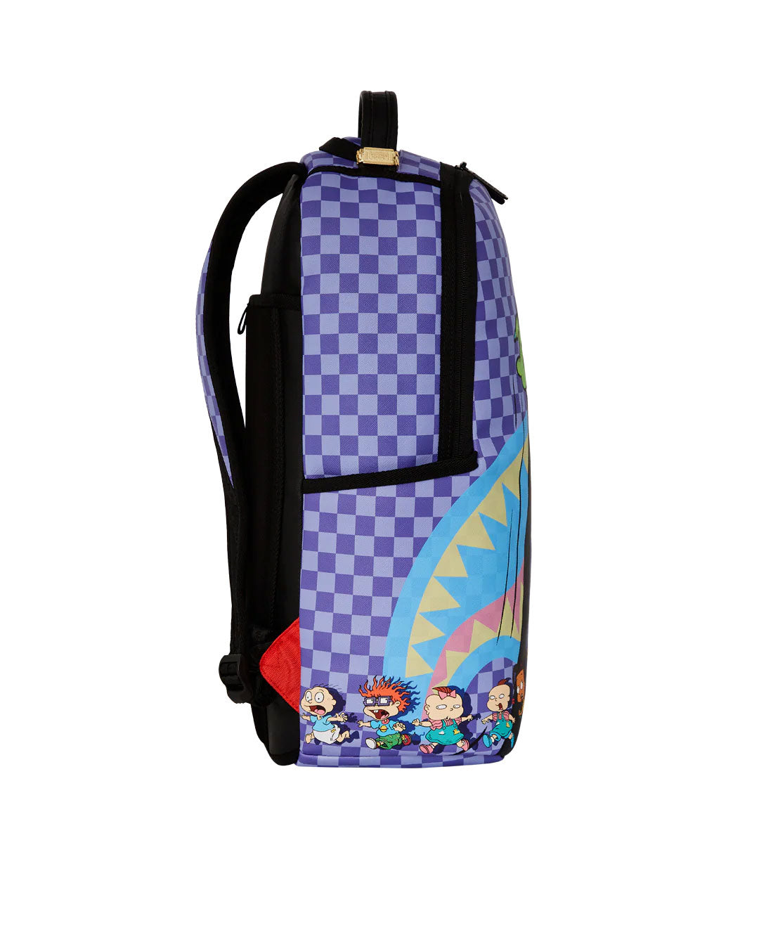 Dimensions: 18" x 6" x 11.5" • Front zipper pocket • Side pockets • Zippered Stash pocket • Separate velour sunglass compartment • Ergonomic mesh back padding • Adjustable Straps for custom sizing • Gold zippers with metal hardware • Metal "Sprayground Authentic" badge • Slide through back sleeve connects to carry-on luggage to free your hands