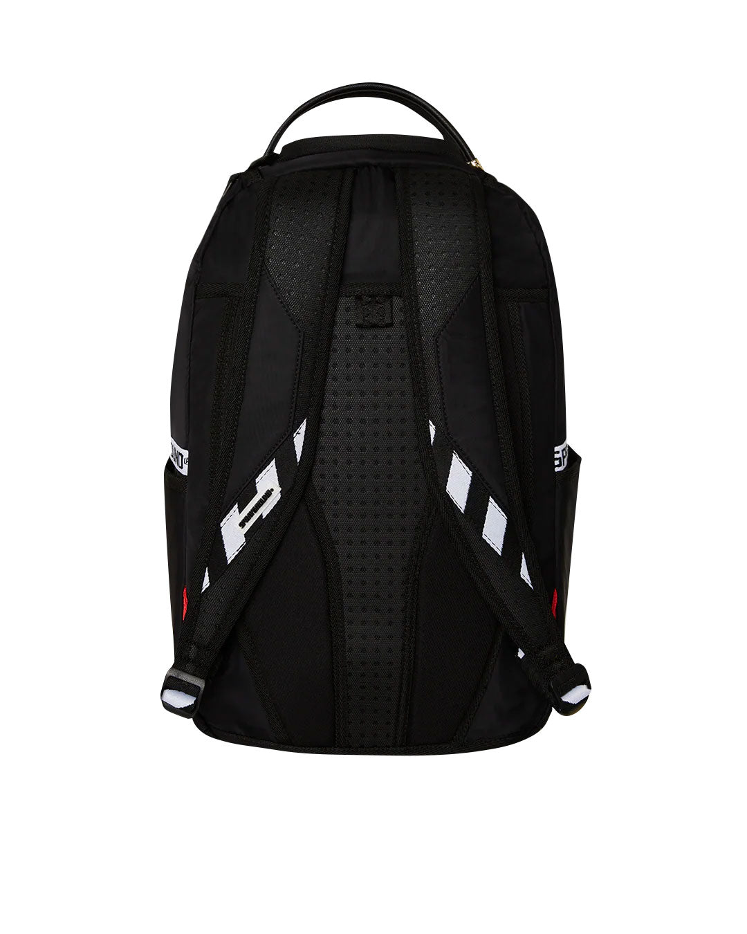Dimensions: 18" x 6" x 11.5" • Front zipper pocket • Side pockets • Zippered Stash pocket • Separate velour sunglass compartment • Ergonomic mesh back padding • Adjustable Straps for custom sizing • Gold zippers with metal hardware • Metal "Sprayground Authentic" badge • Slide through back sleeve connects to carry-on luggage to free your hands